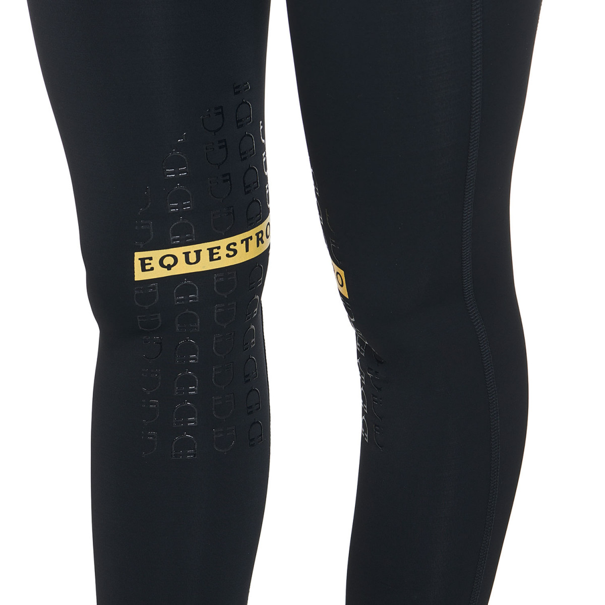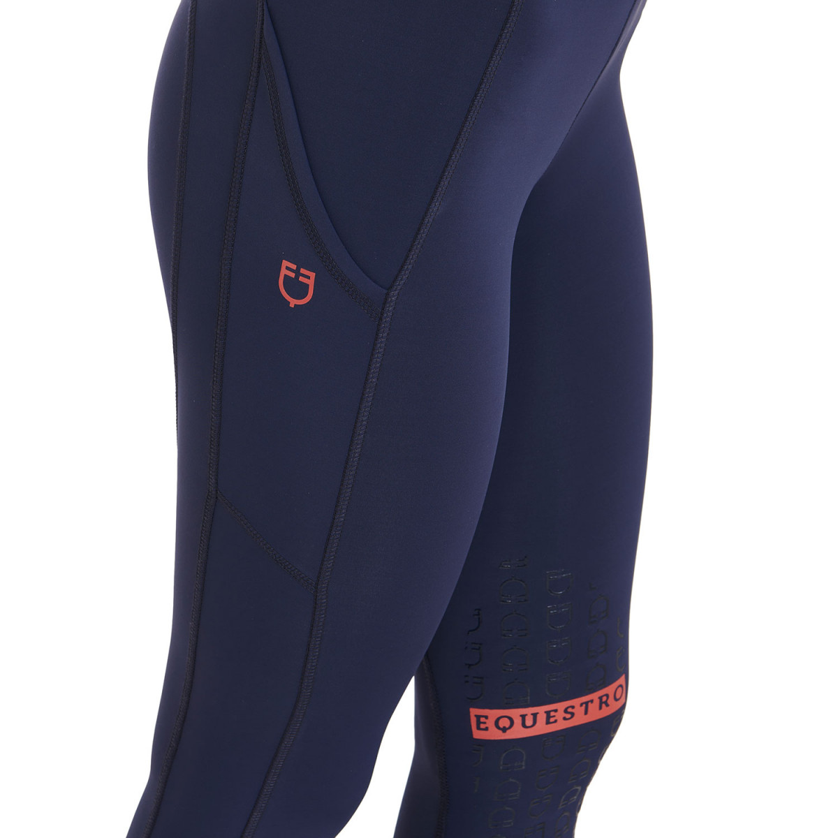 Women's slim fit leggings in stretch technical fabric are a truly versatile garment, they can in fact be used not only for daily training but are also perfect for leisure time. They come with a side pocket decorated with an embroidery bearing the brand logo and a silicone grip on the inside of the knee. The elasticity and lightness of the fabric are what is needed to maintain a normal body temperature so as to guarantee freshness even in the summer season. The garment wraps the legs perfectly, adapting to any type of body.