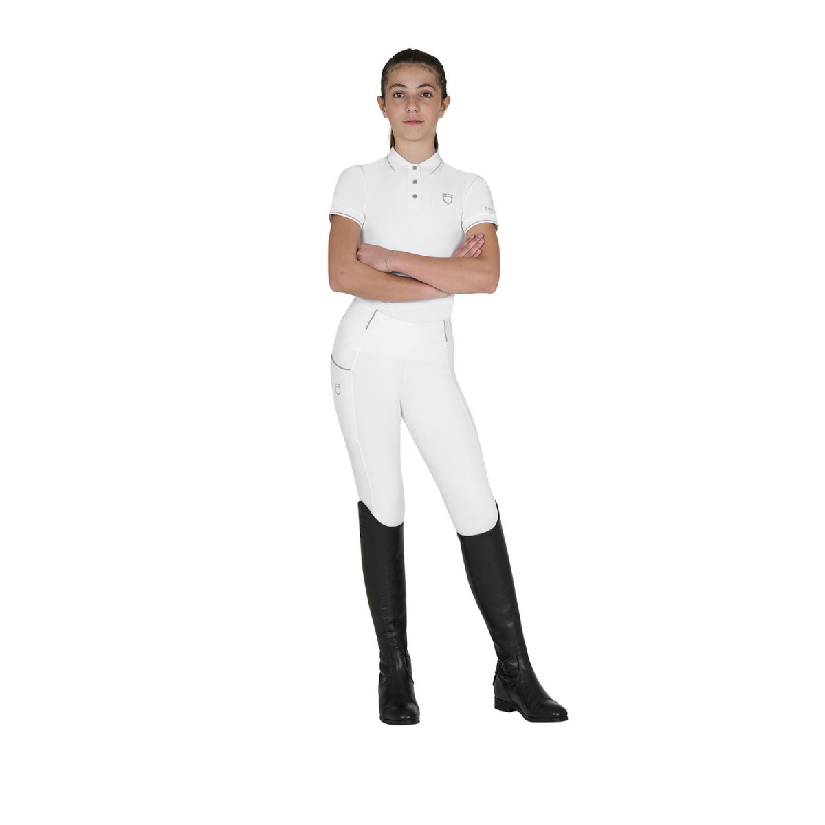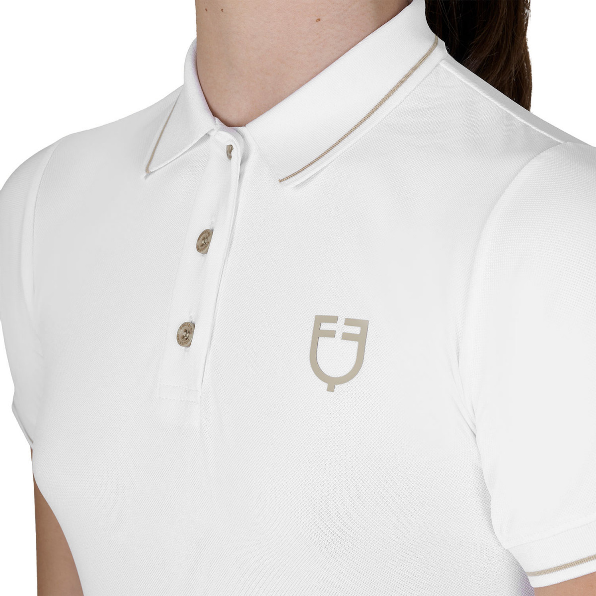 The polo is finished with a contrasting border on both the sleeves and collar and the three-button closure and is decorated with the Equestro logo on the chest.