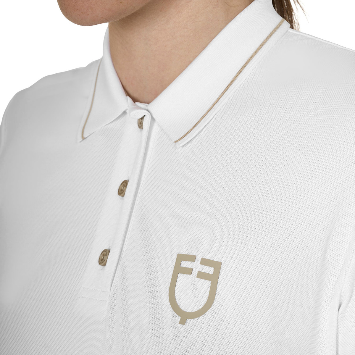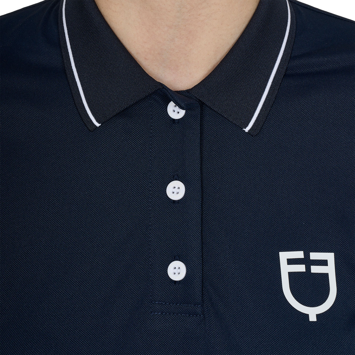 Women's slim fit half-sleeved technical polo shirt in breathable technical fabric guarantees freshness even in the summer season as it protects from high temperatures and UV rays.