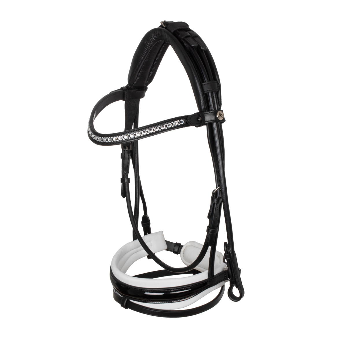 The shaped browband and noseband are designed to follow the anatomy of the horse, avoiding any pressure on the most delicate points. This minimalist design is typical of Acavallo® products and gives the bridle a touch of elegance and functionality thanks also to the use of shiny leather on the noseband and the application of rhinestones on the browband.