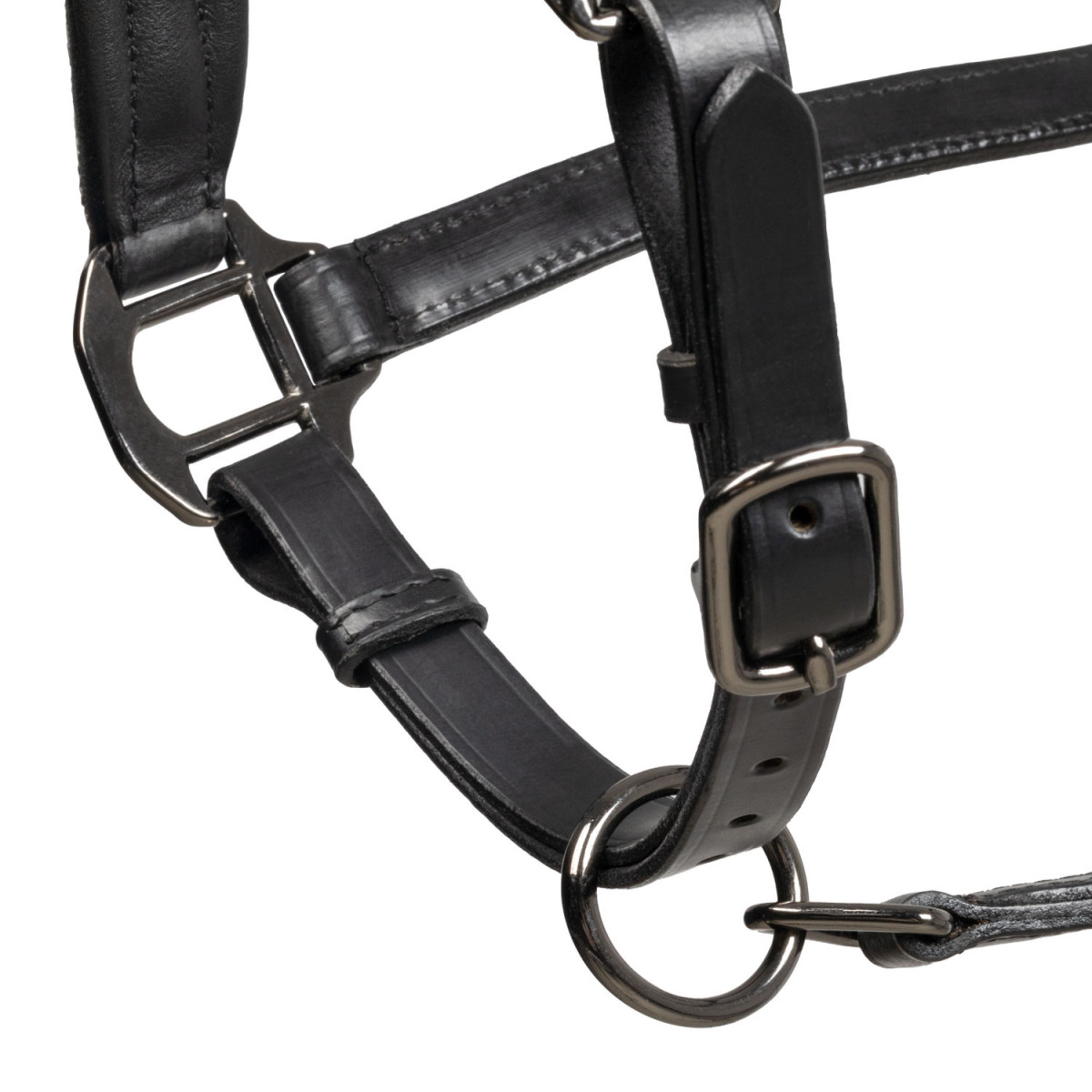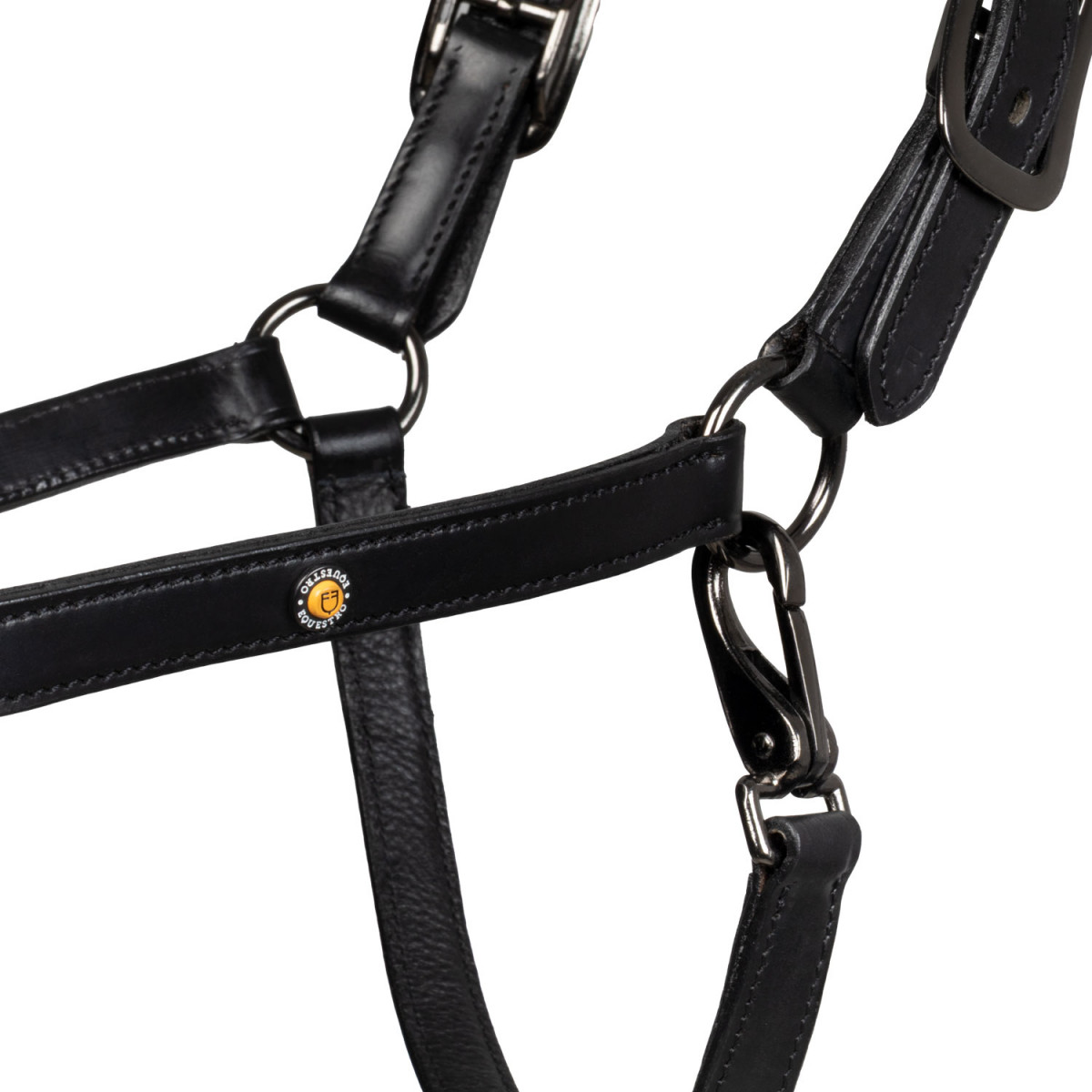 This soft, high-quality leather halter is designed for superior comfort and durability. Equipped with ultra-strong stainless steel buckles and a practical snap hook closure, it ensures safety and ease of use.