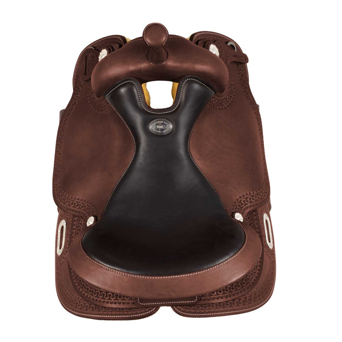 A reining saddle made of high quality greased leather to ensure durability.