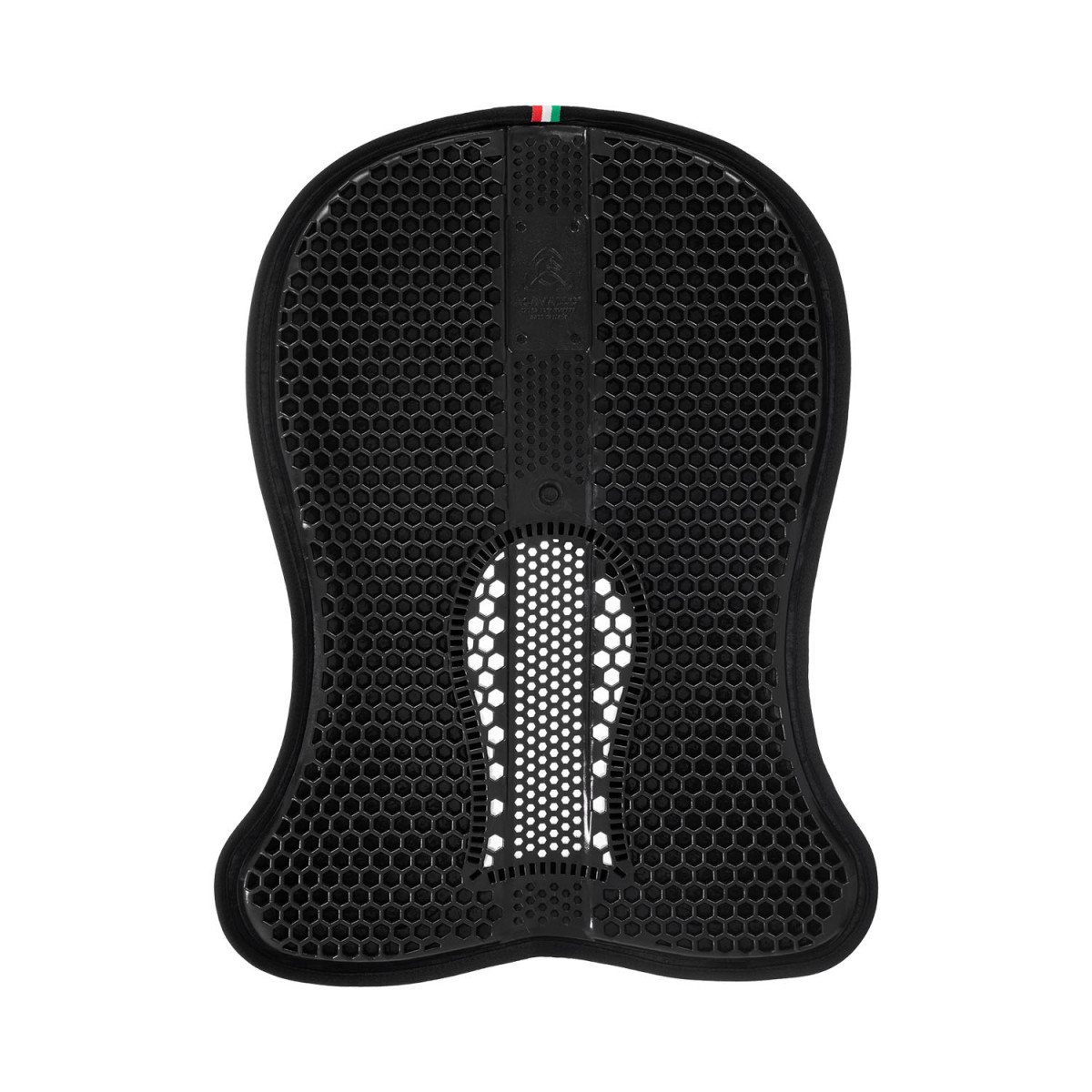 The hex structure of the gel allows the compression of the air inside the pad cells, which is automatically expelled during the horse's movements.