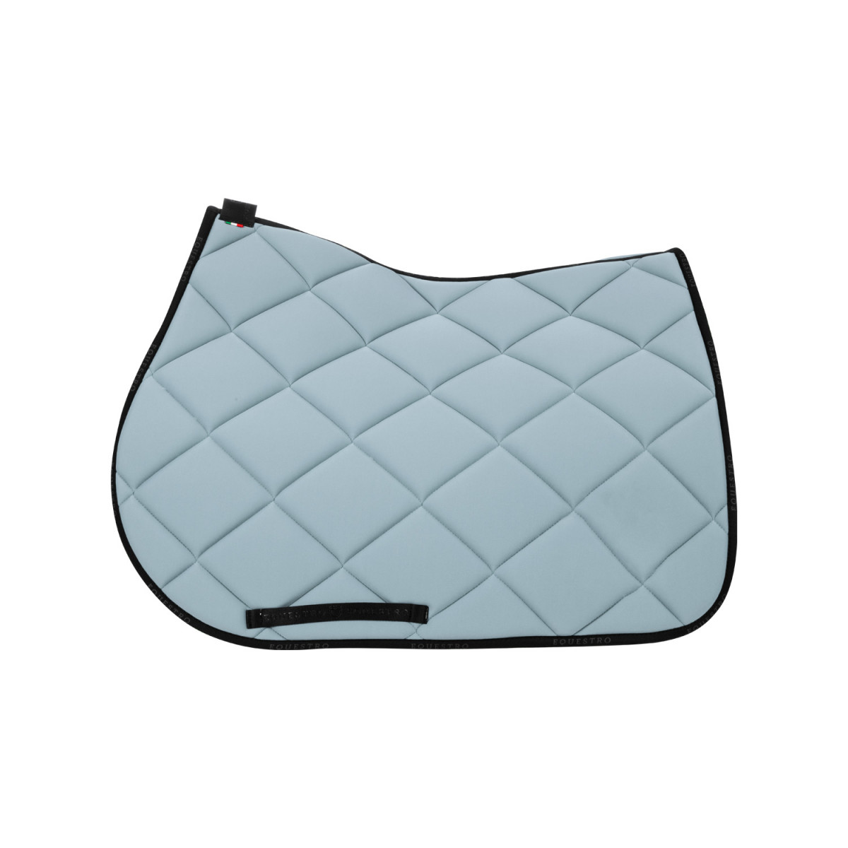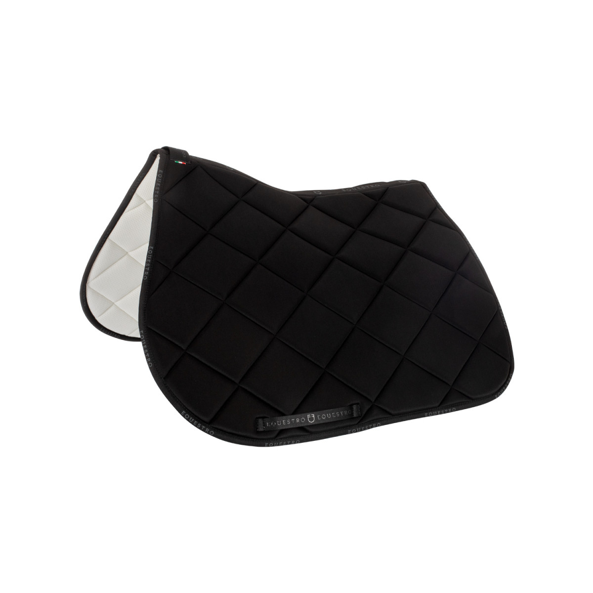 Jumping saddle pad made of padded technical fabric to minimize the displacement of the saddle and impacts, avoiding any type of dermabrasion.