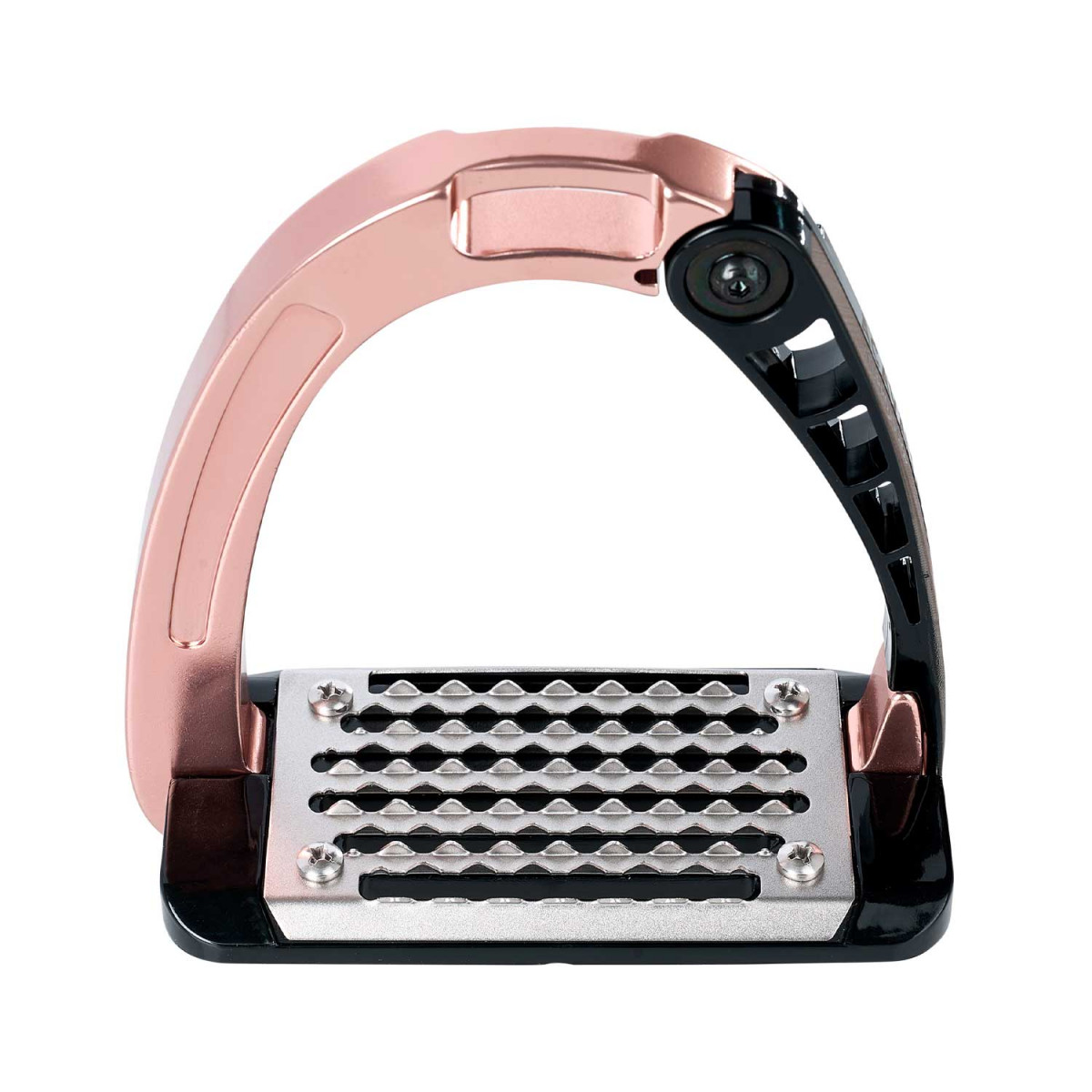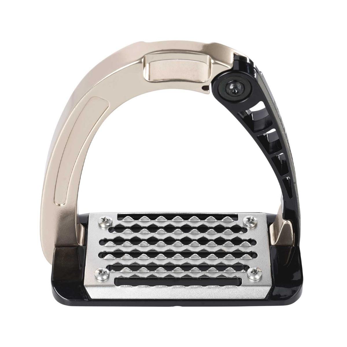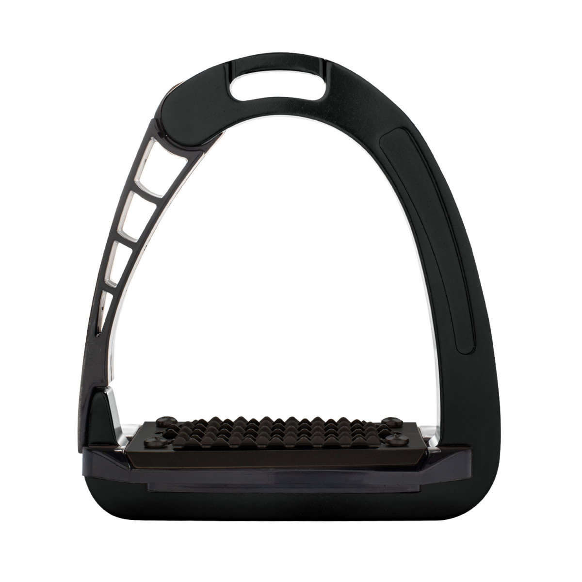 The patented side opening was created using an innovative injection molding technique. The outward opening of the stirrup arm aids in the release of the foot in case of emergency.