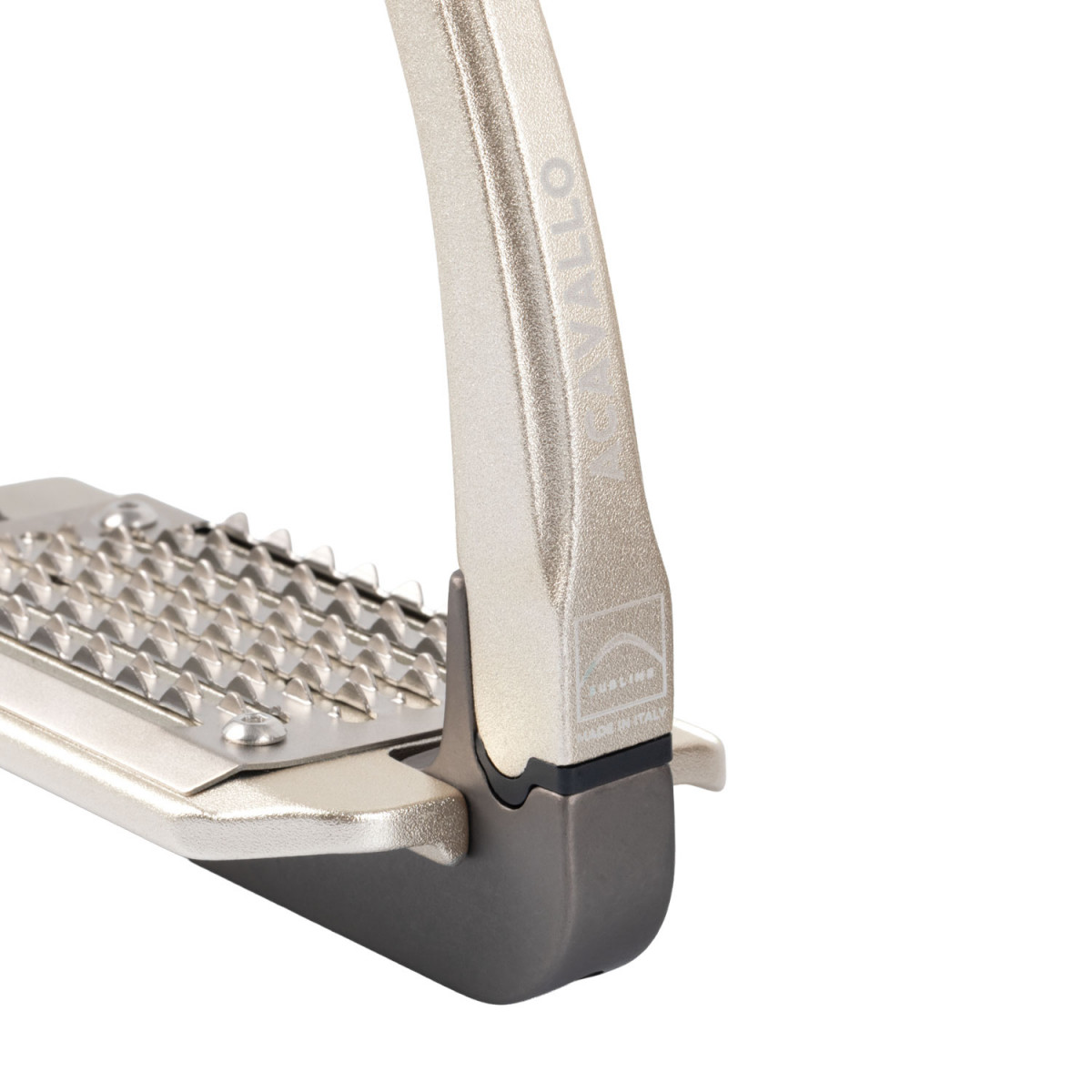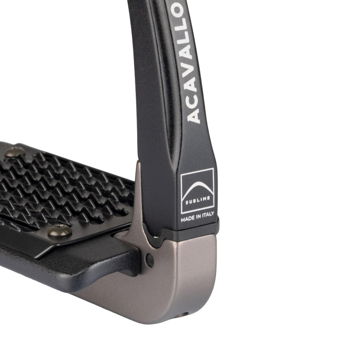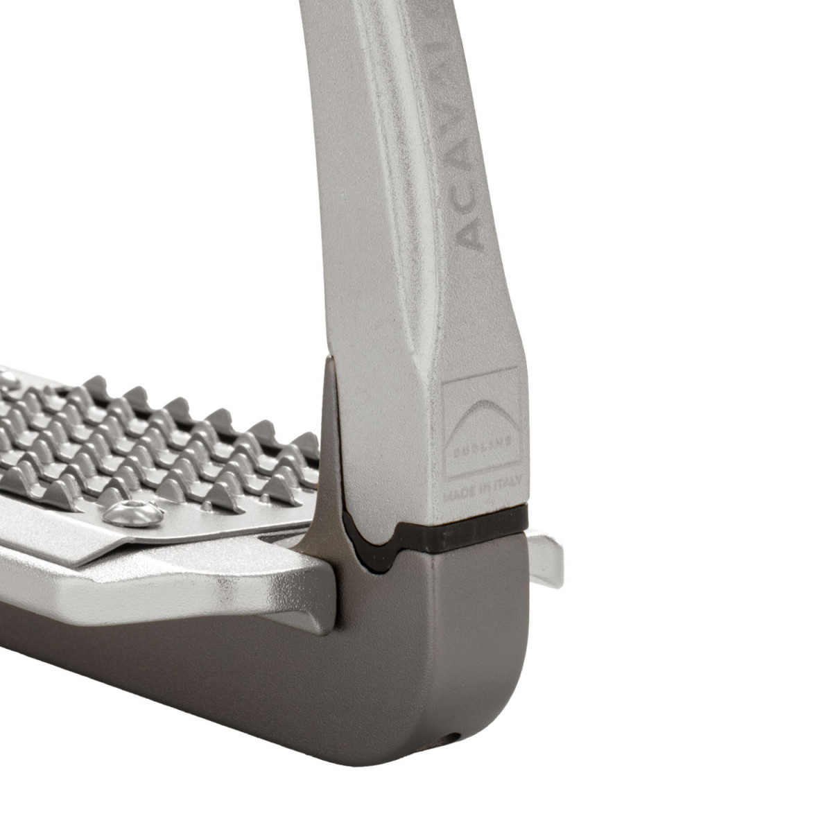 Realizzate con metallo high-tech e polimeri flessibili, offrono maggiore comfort e ridotta rigidità rispetto alle staffe tradizionali. Inoltre il braccetto dotato di innovativo movimento di rotazione a 180° permette al cavaliere un facile rilascio in caso di caduta frontale, posteriore o laterale. La parte superiore in acciaio inossidabile con fori orizzontali garantisce una presa ottimale in tutte le condizioni, proteggendo le staffe dalla corrosione.