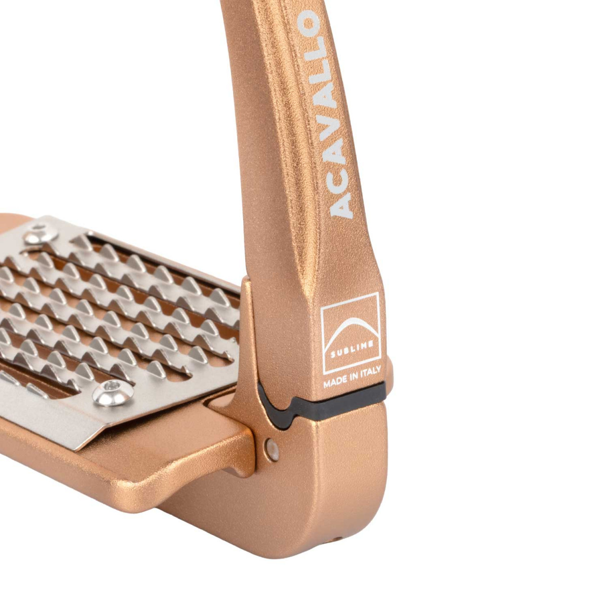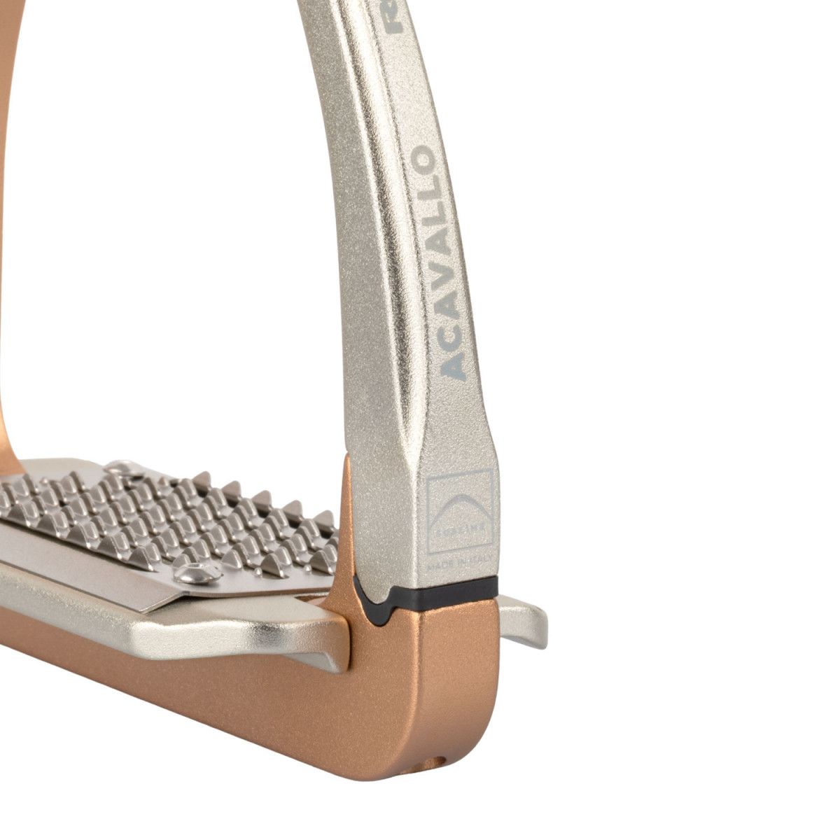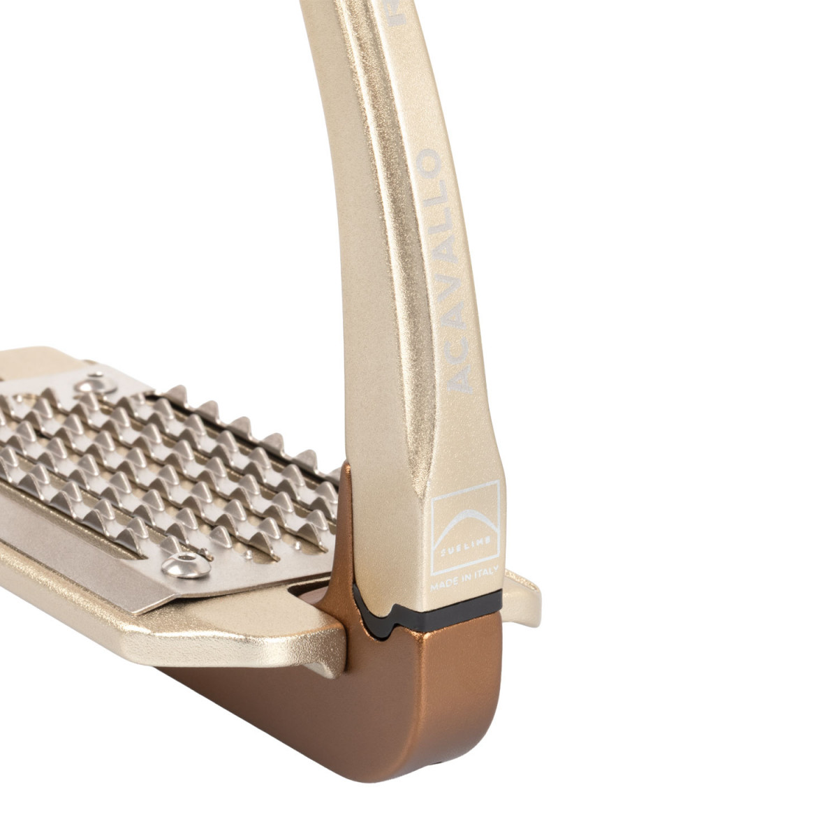 Realizzate con metallo high-tech e polimeri flessibili, offrono maggiore comfort e ridotta rigidità rispetto alle staffe tradizionali. Inoltre il braccetto dotato di innovativo movimento di rotazione a 180° permette al cavaliere un facile rilascio in caso di caduta frontale, posteriore o laterale. La parte superiore in acciaio inossidabile con fori orizzontali garantisce una presa ottimale in tutte le condizioni, proteggendo le staffe dalla corrosione.