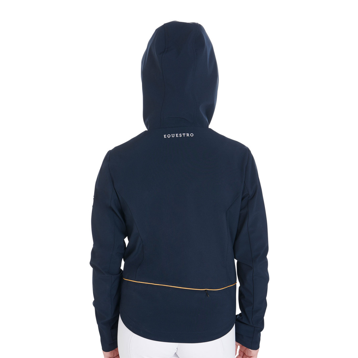 Dotata di cappuccio, zip antivento con doppio cursore, coulisse alla vita e polso regolabile con strappo in velcro.
