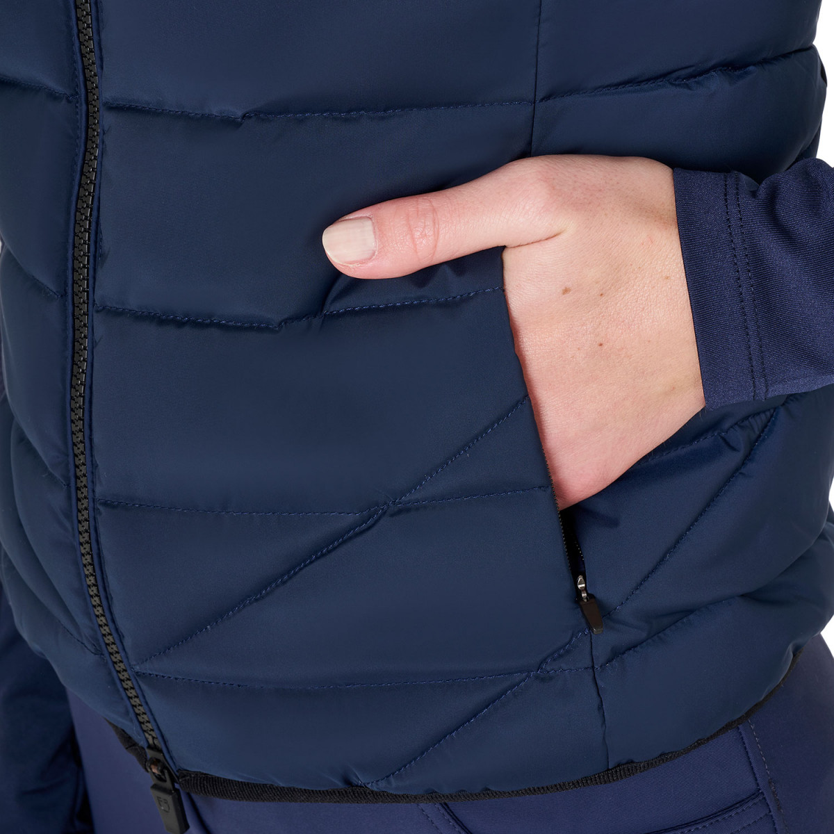 La leggera imbottitura lo rende ideale nelle giornate più fresche, assicurando calore senza rinunciare alla leggerezza. Il design è studiato nei minimi dettagli: zip frontale, tasche laterali con chiusura a scomparsa e patch in silicone con logo Equestro per un tocco sportivo.