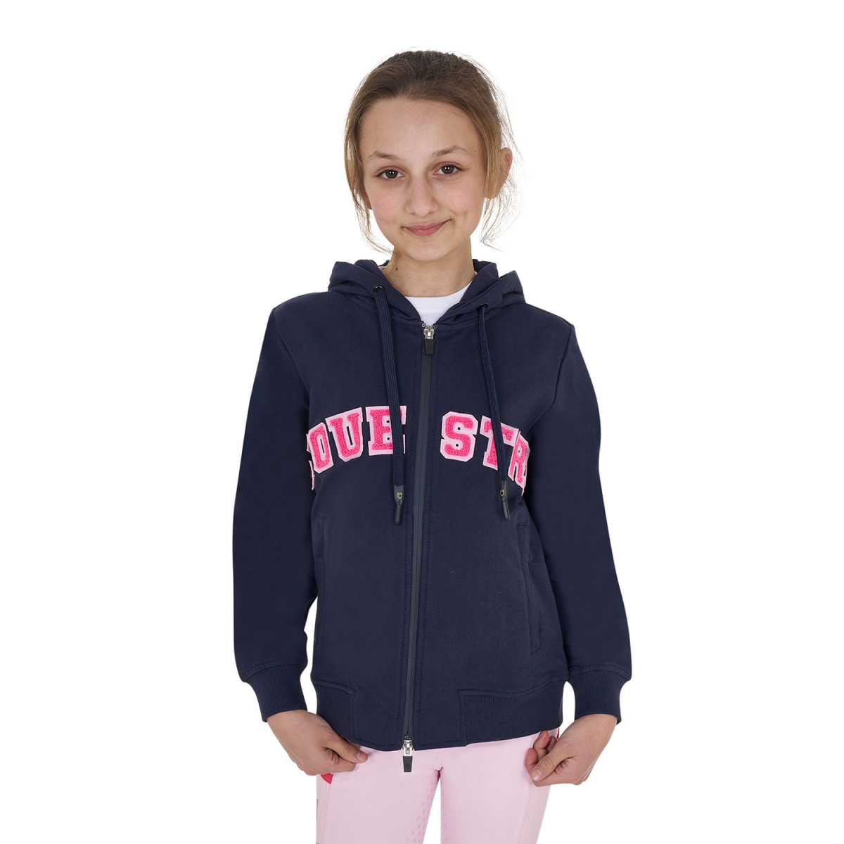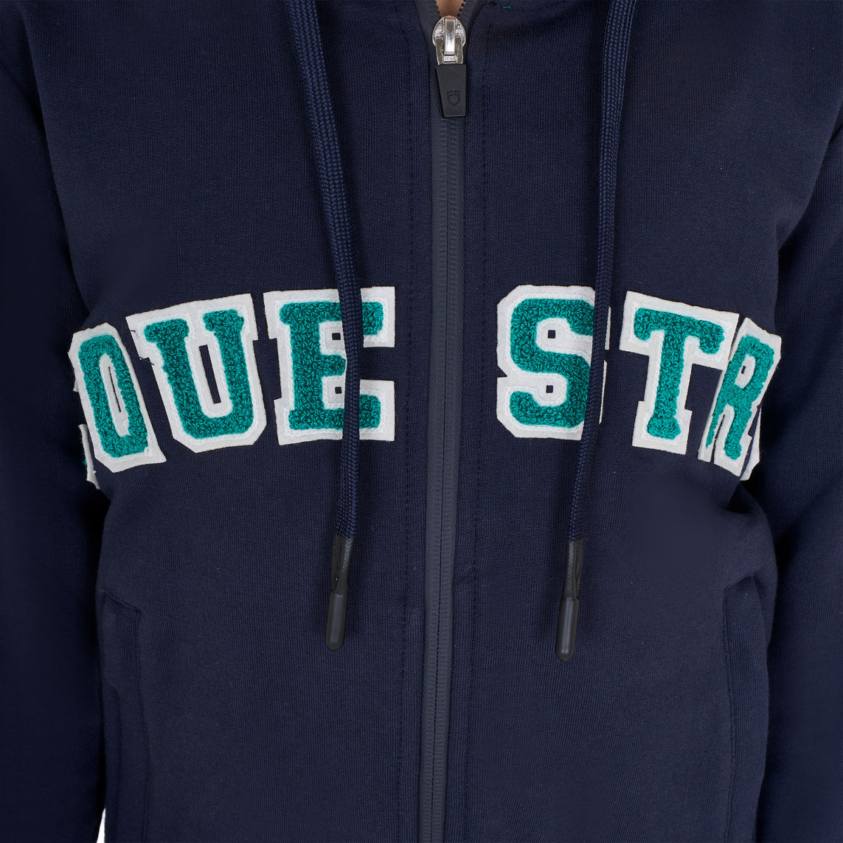La scritta Equestro in spugna posta sul petto aggiunge un elemento di tendenza, donando un tocco di personalità unica al tuo look.