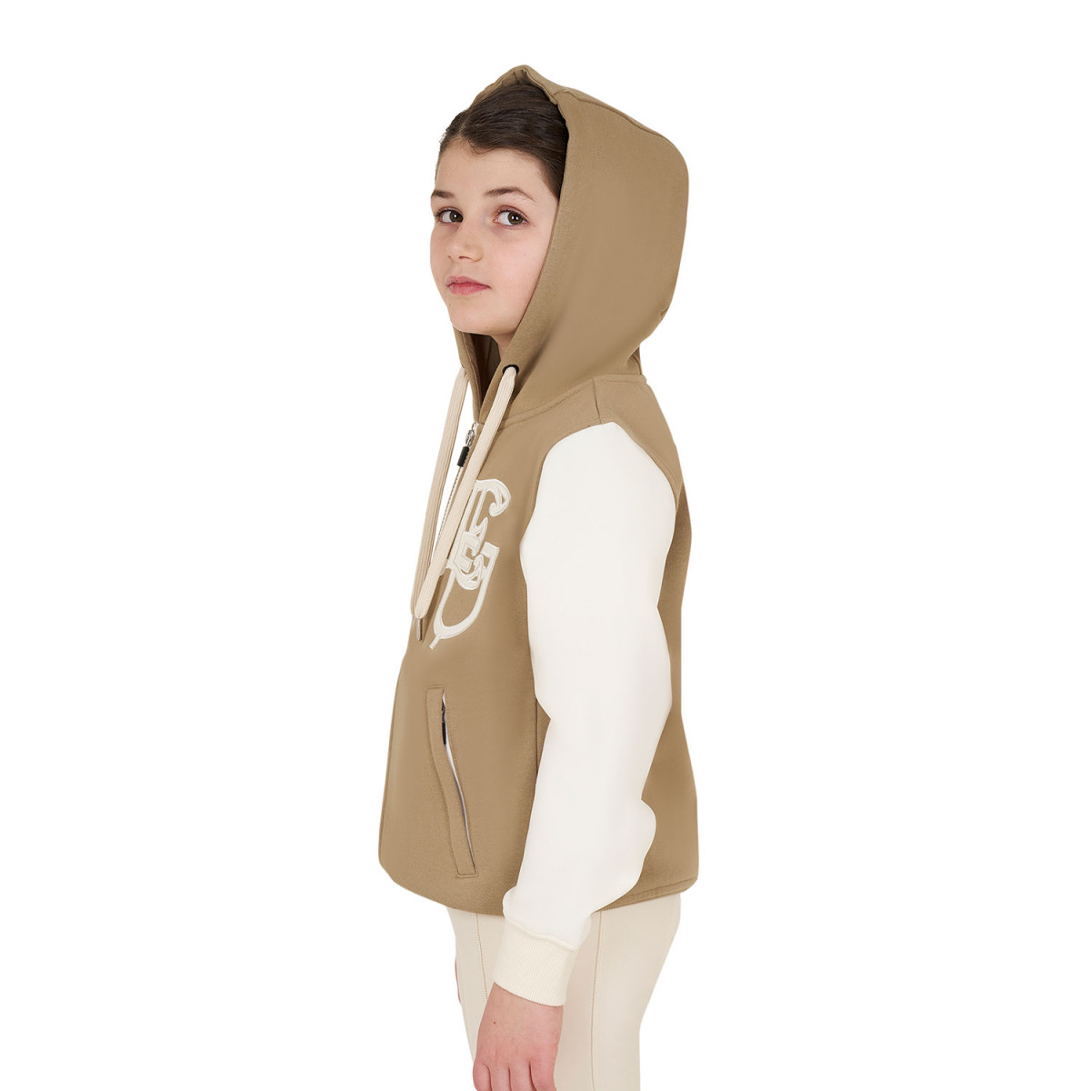 Felpa tecnica da bambina in morbido tessuto tecnico misto cotone, dal tocco casual arricchito da dettagli distintivi a contrasto.
