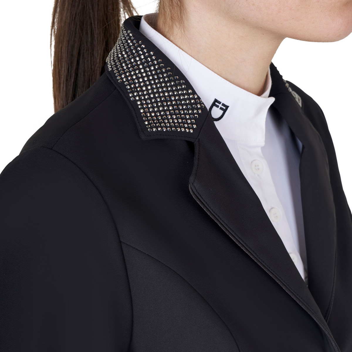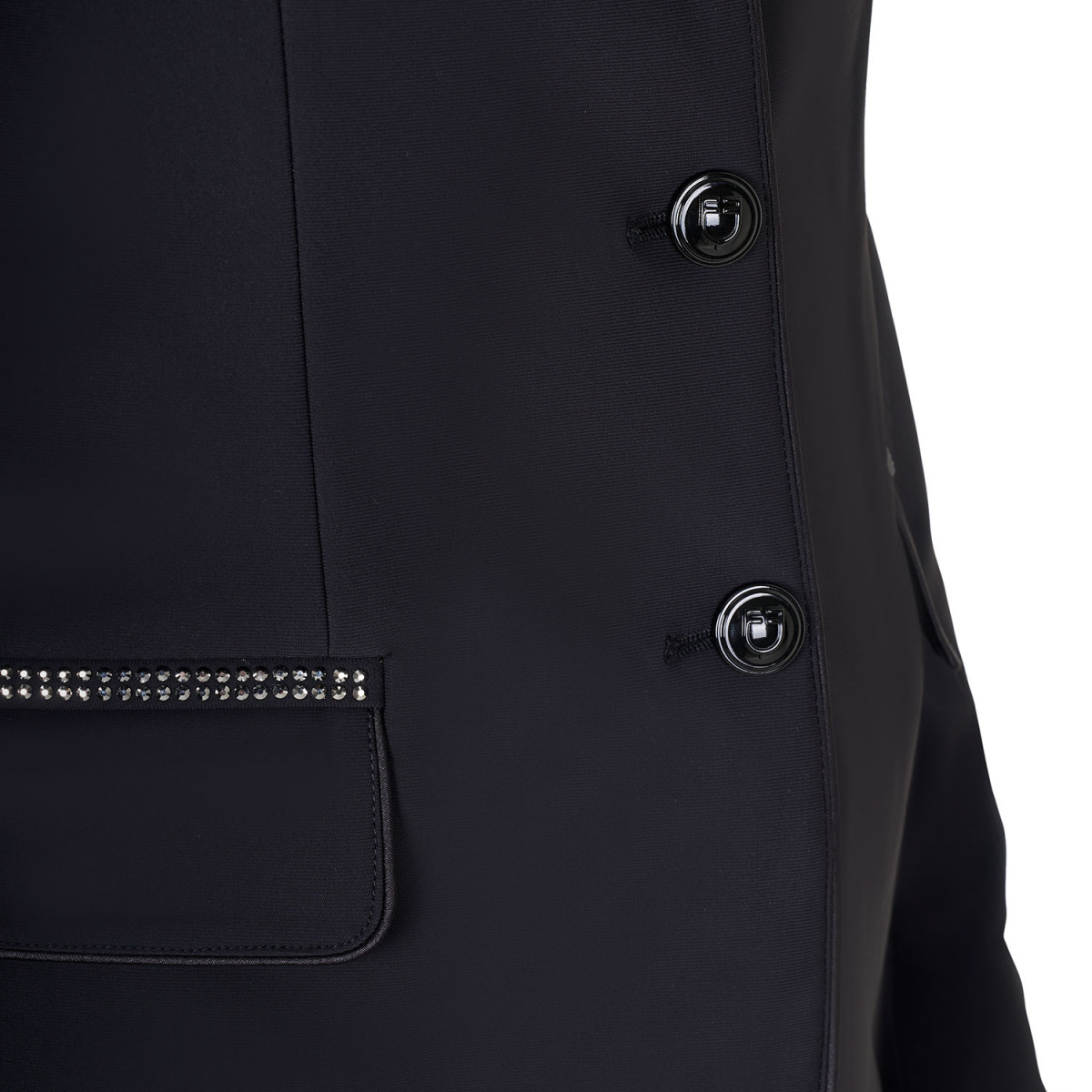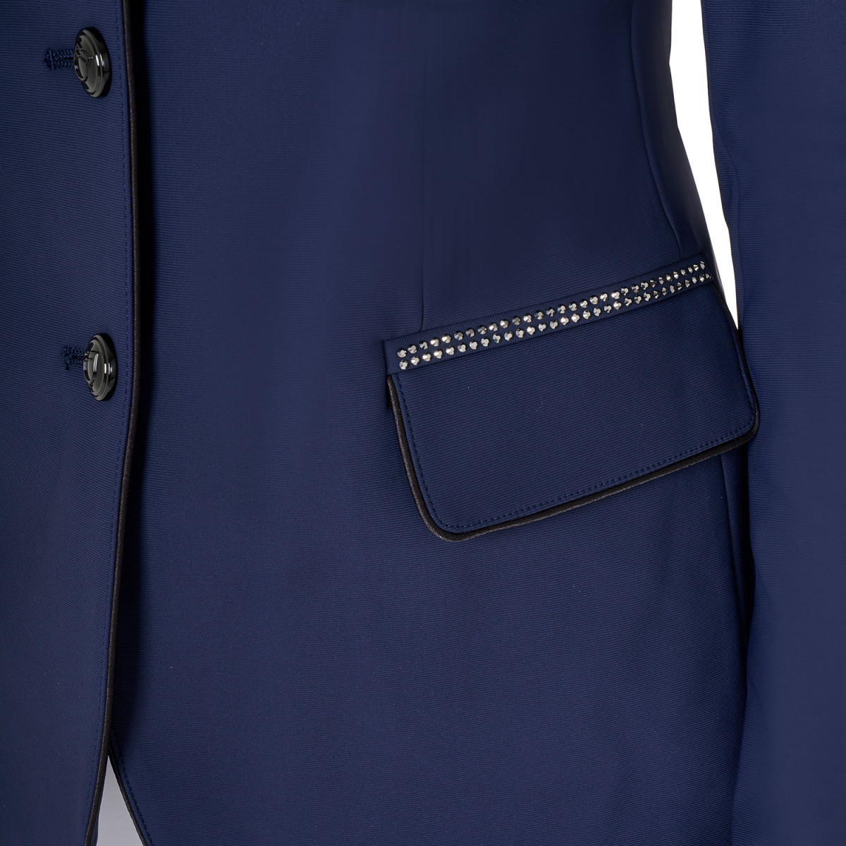 Giacca da concorso donna dal taglio classico, pensata per garantire eleganza e funzionalità durante i concorsi. La chiusura frontale a tre bottoni si abbina armoniosamente al design, che donano carattere e raffinatezza al capo.