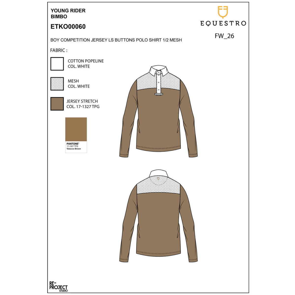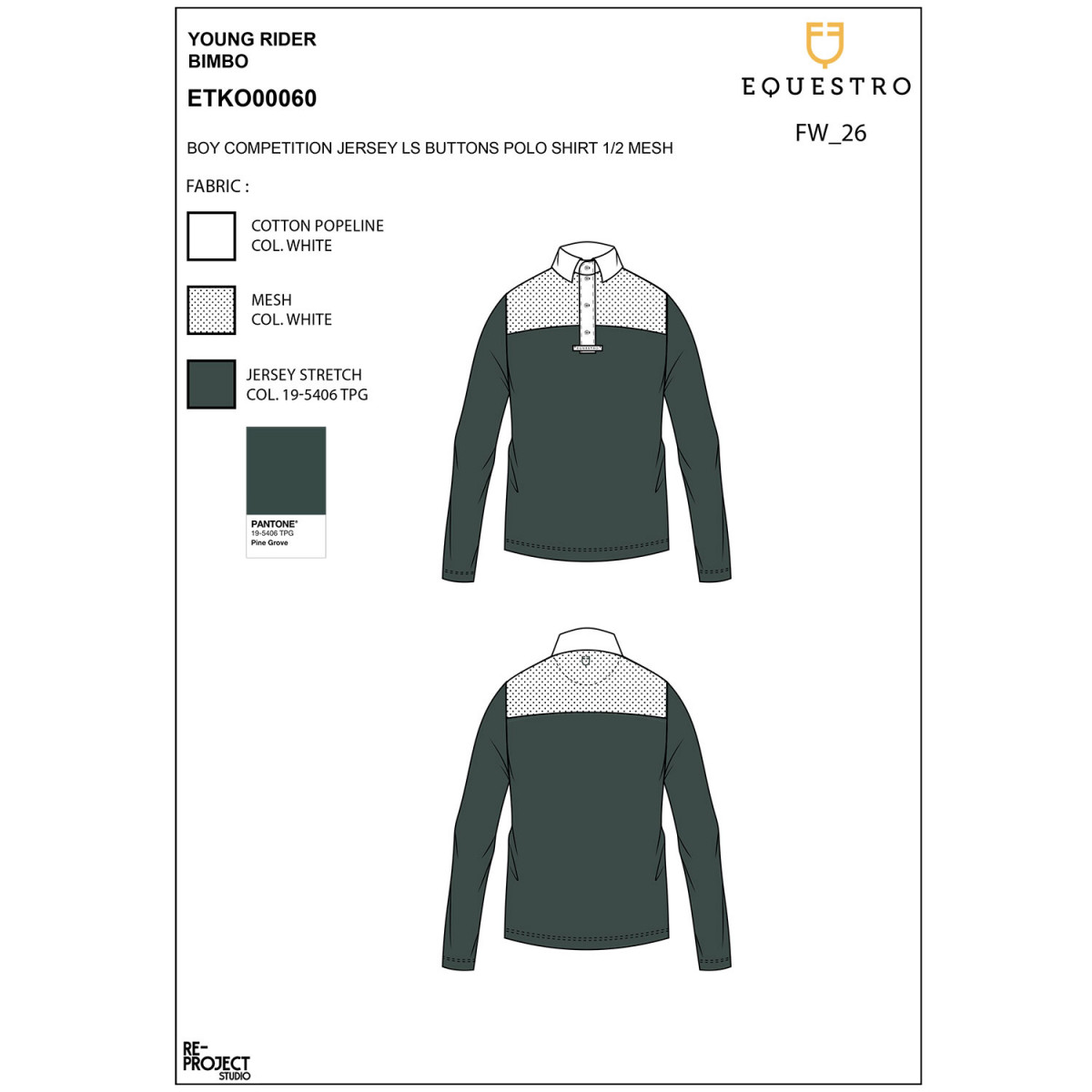 Si presenta con chiusura a tre bottoni e colletto button down con logo Equestro ricamato tono su tono sulla spalla sinistra.