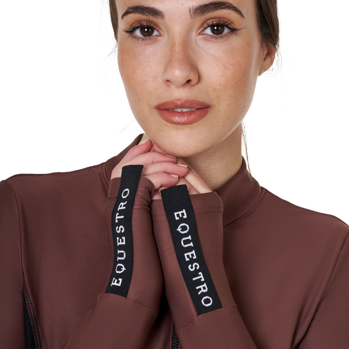Un'eleganza minimale, impreziosita da inserti a contrasto con grafica scritta Equestro sui polsini.