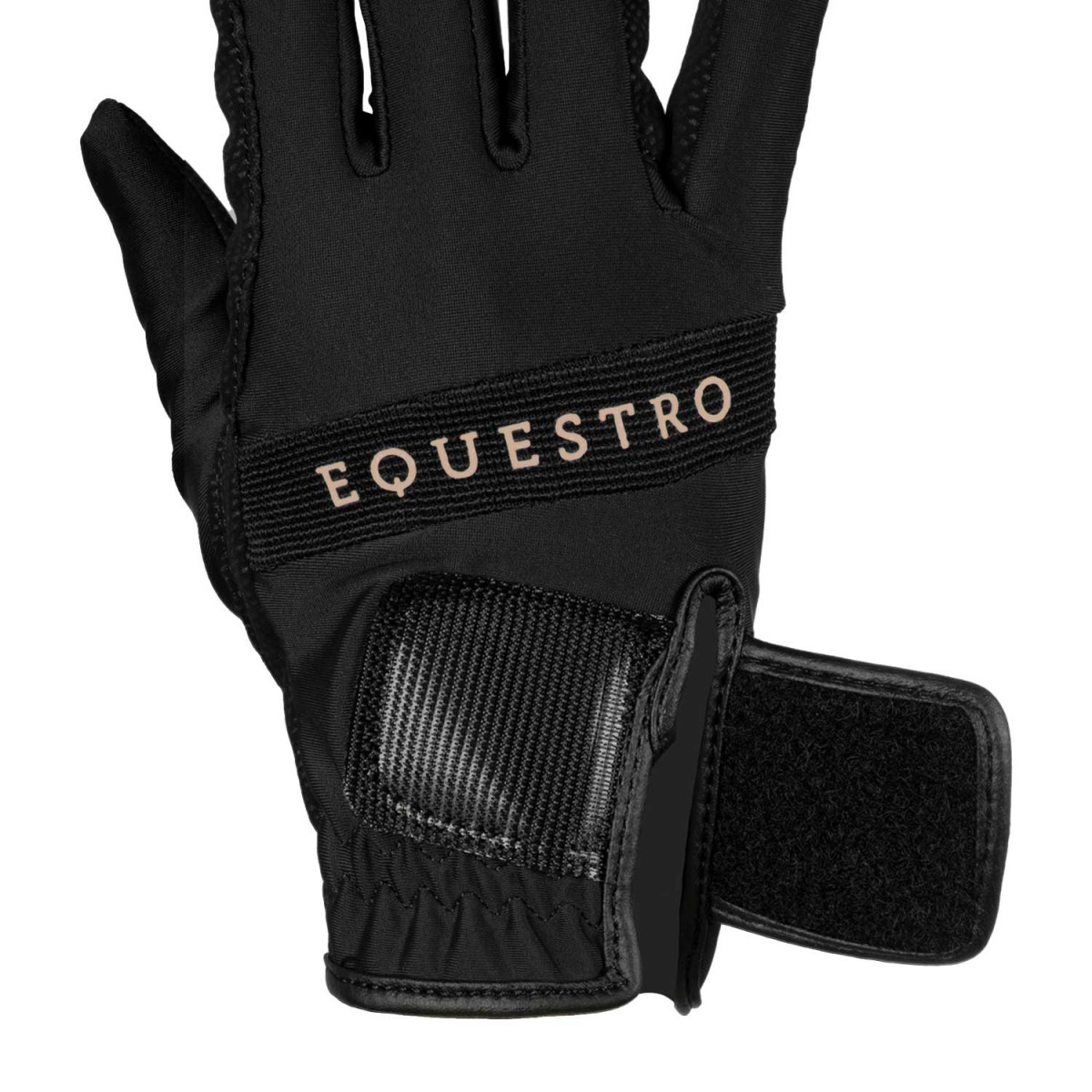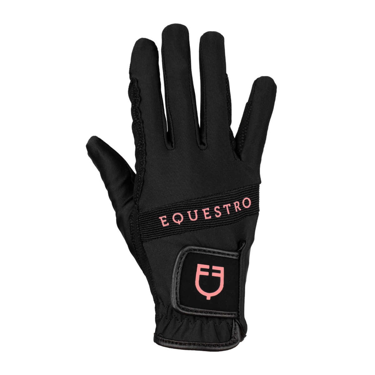 Guanti in tessuto tecnico elasticizzato, ultra traspiranti e perfetti per tutto l'anno. Il logo sulla chiusura in velcro e la scritta Equestro multicolor impreziosiscono il dorso. Caratteristica importante del capo è il grip posto sul palmo, che permette una presa sulle redini più sicura e affidabile.