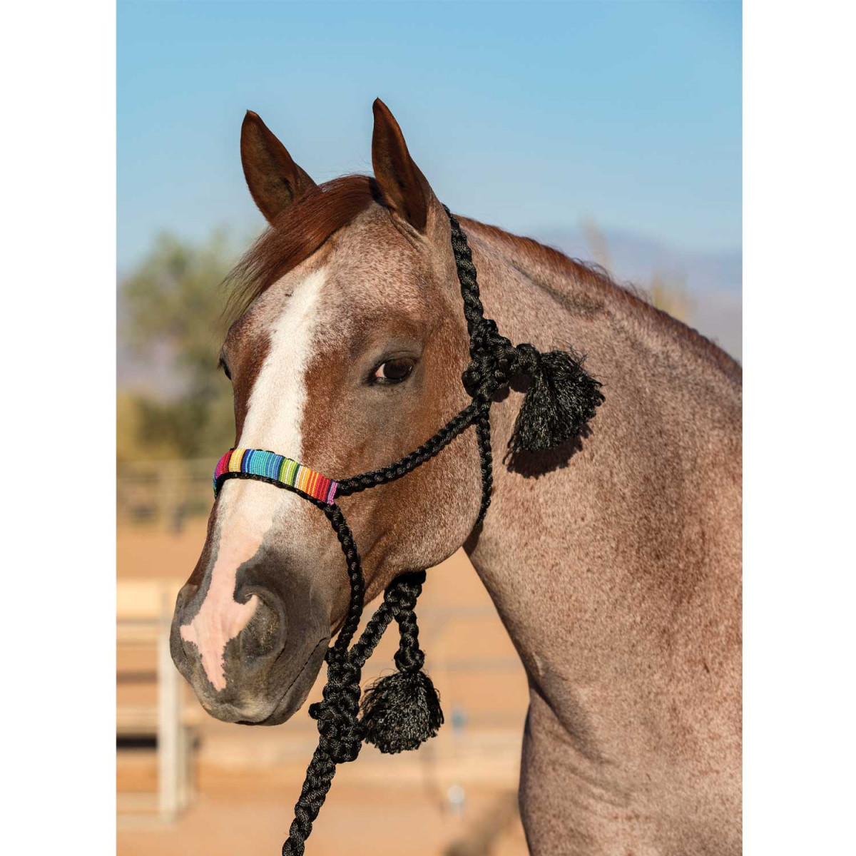 Cavezza realizzata in corda intrecciata, morbida ma robusta, completa di lunghina da tre metri.