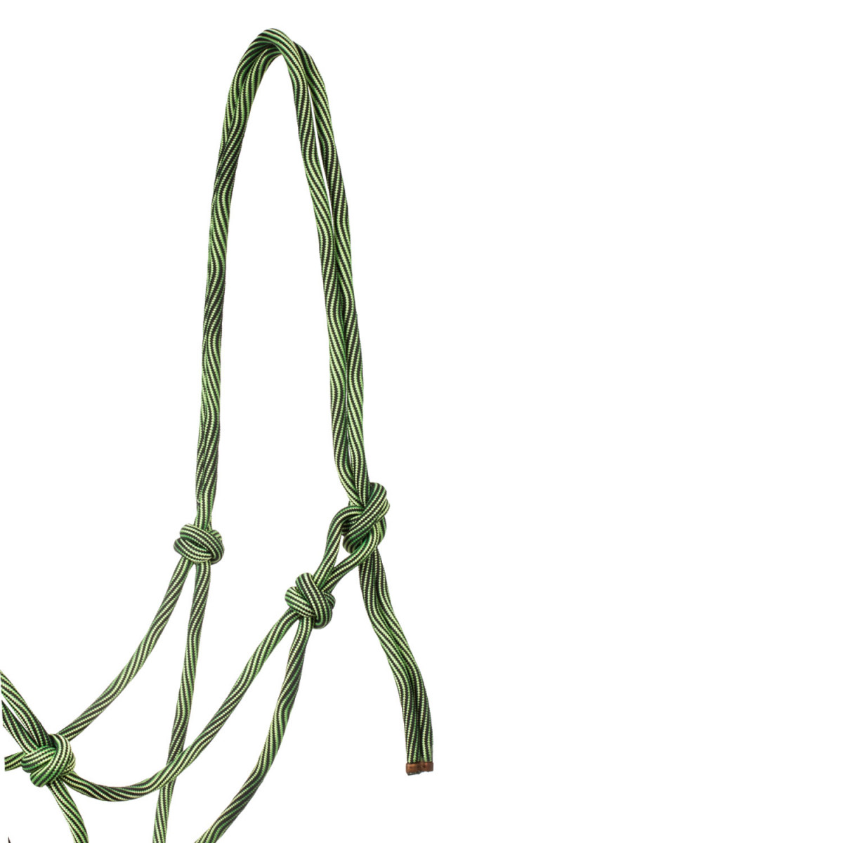 Cavezza in corda annodata con doppio sovraccapo per garantire massima resistenza.