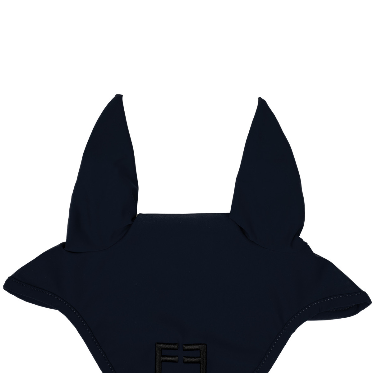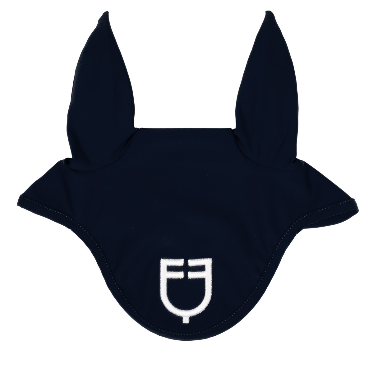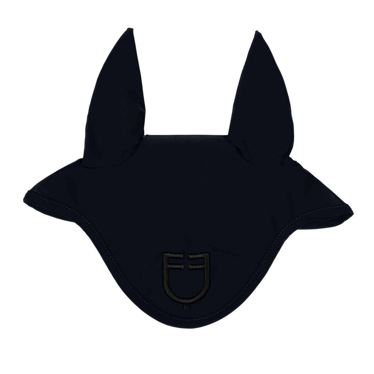 Cuffietta con logo realizzata in tessuto tecnico, traspirante ed elasticizzato al fine di garantire una perfetta vestibilità. Protegge le orecchie del cavallo dagli insetti e attenuare i rumori. Decorata con bordino tono su tono e logo frontale.