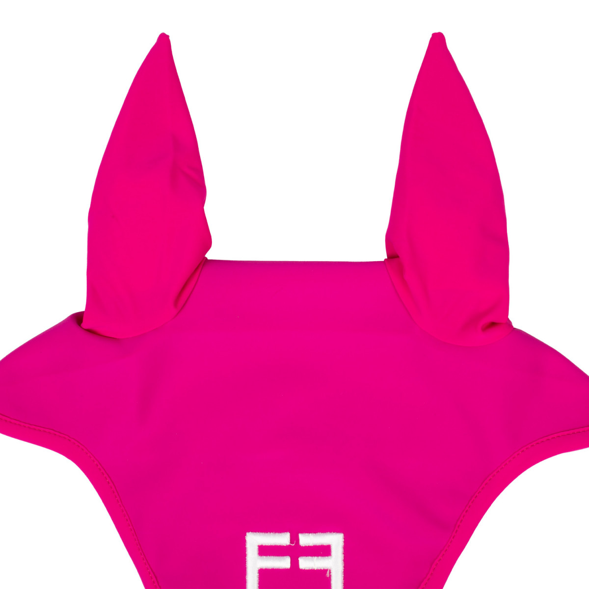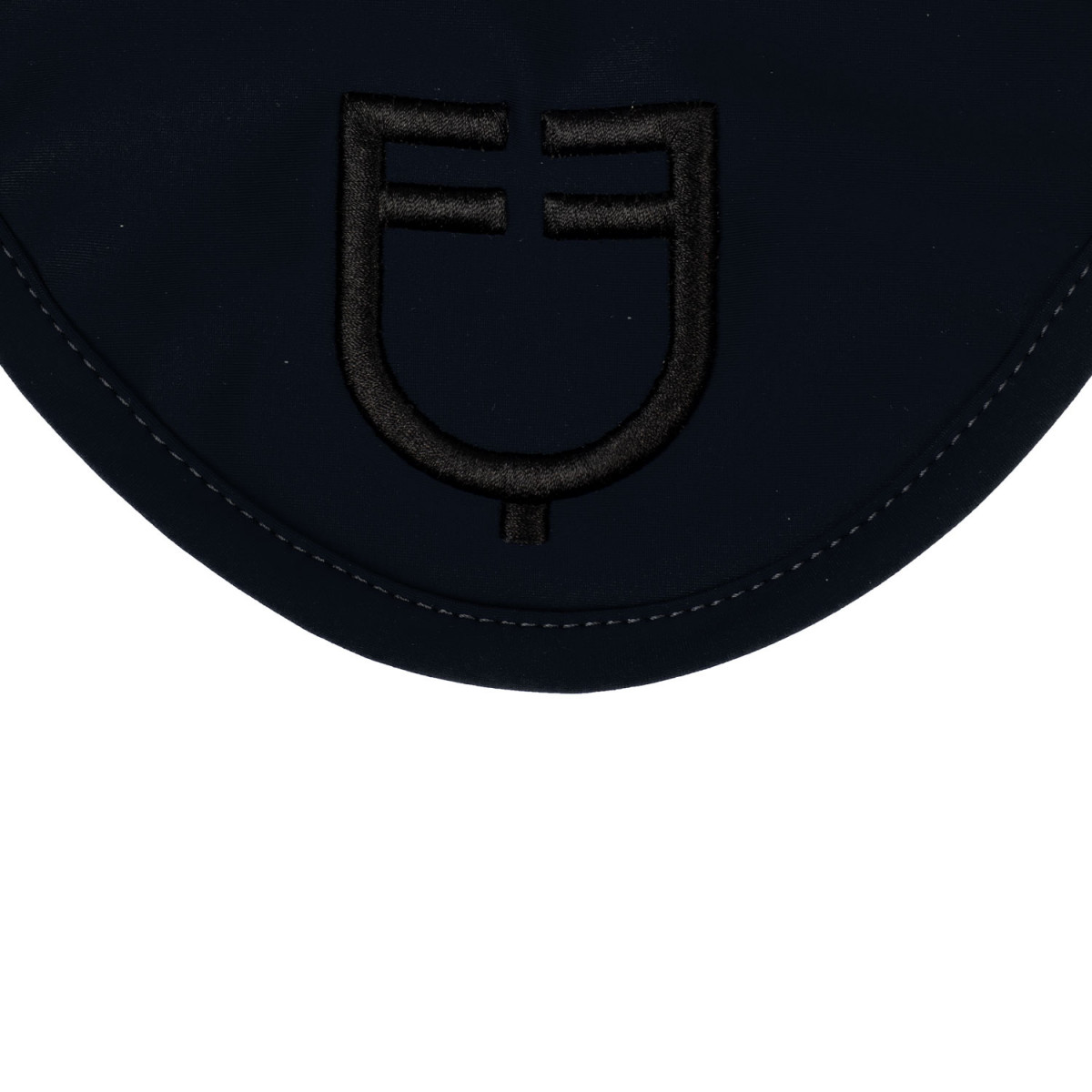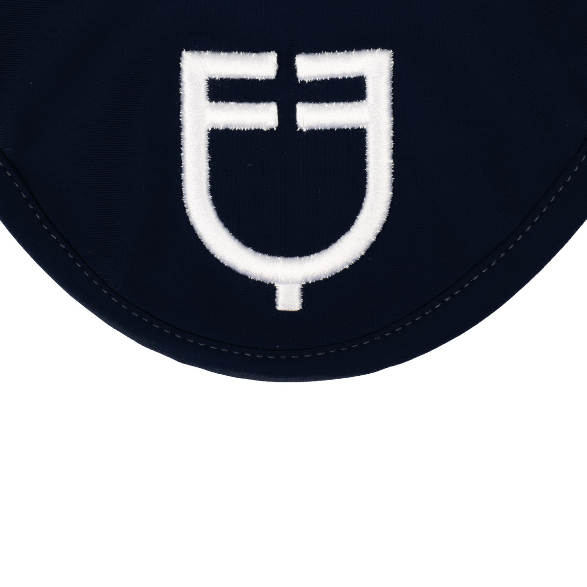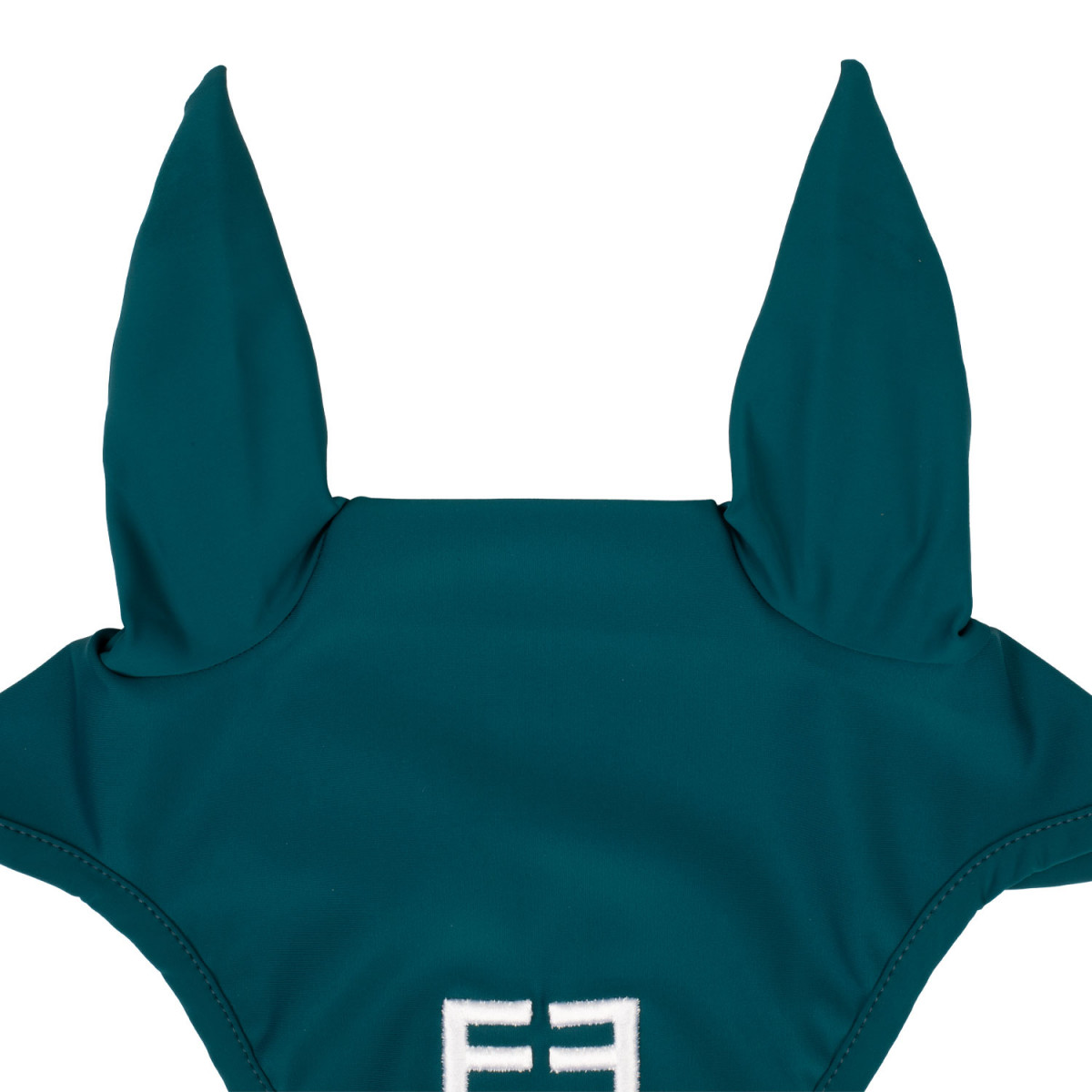 Cuffietta con logo realizzata in tessuto tecnico, traspirante ed elasticizzato al fine di garantire una perfetta vestibilità. Protegge le orecchie del cavallo dagli insetti e attenuare i rumori. Decorata con bordino tono su tono e logo frontale.