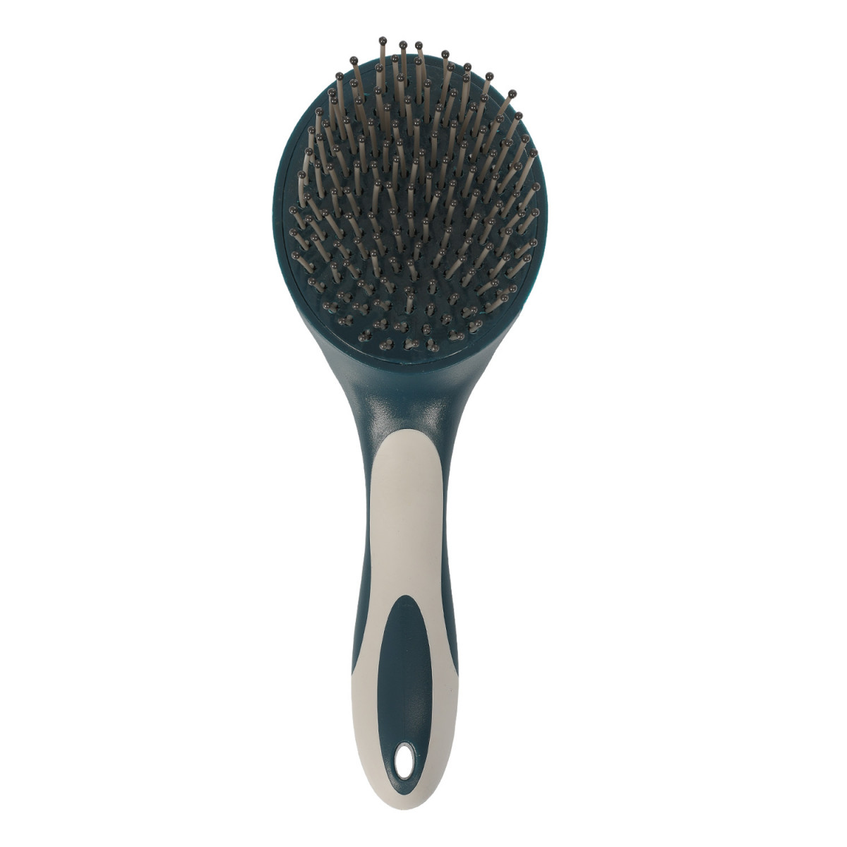 Spazzola tonda realizzata in morbida gomma con denti fini per coda e criniera.