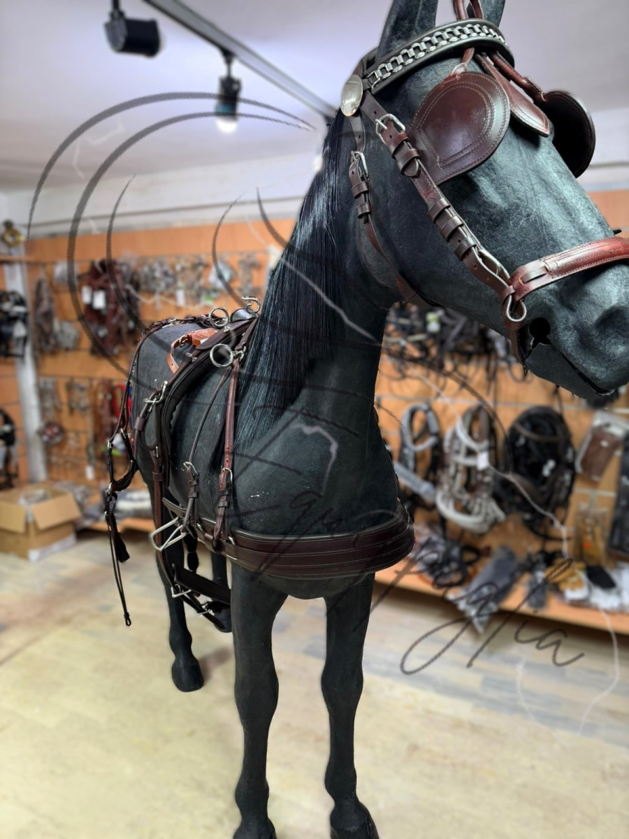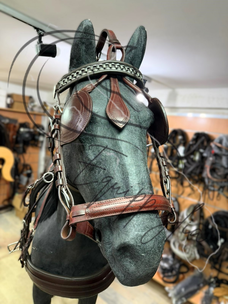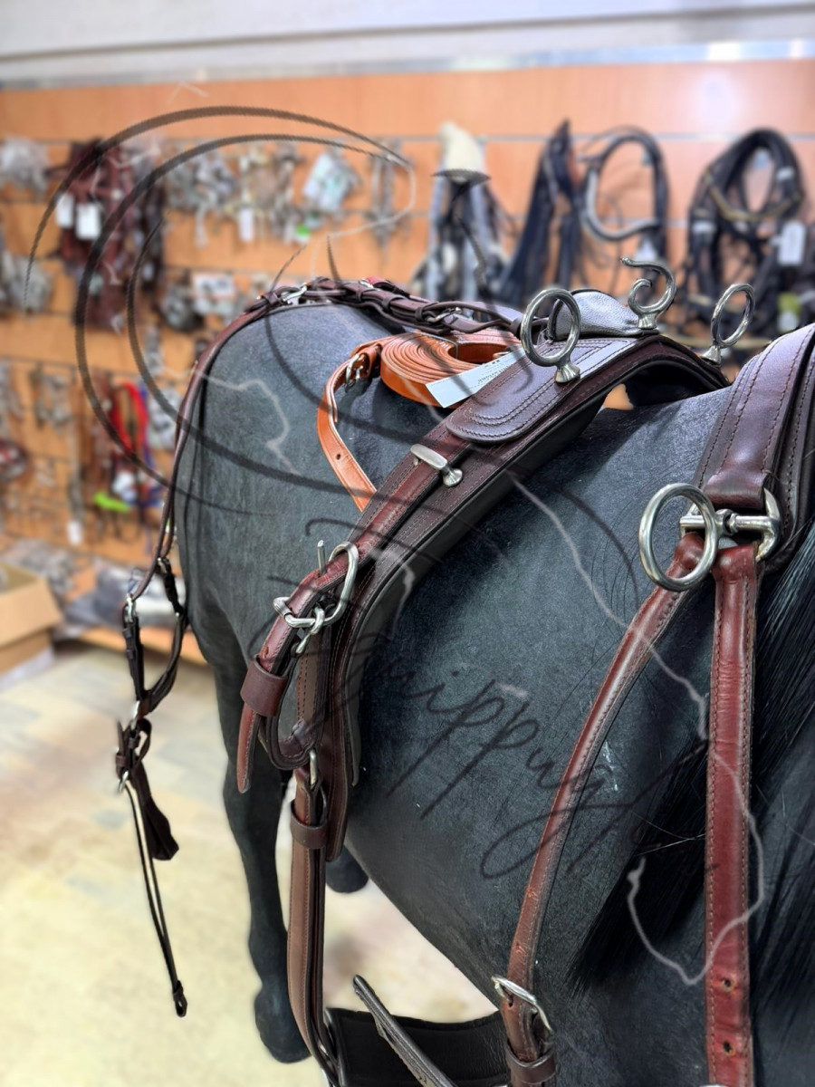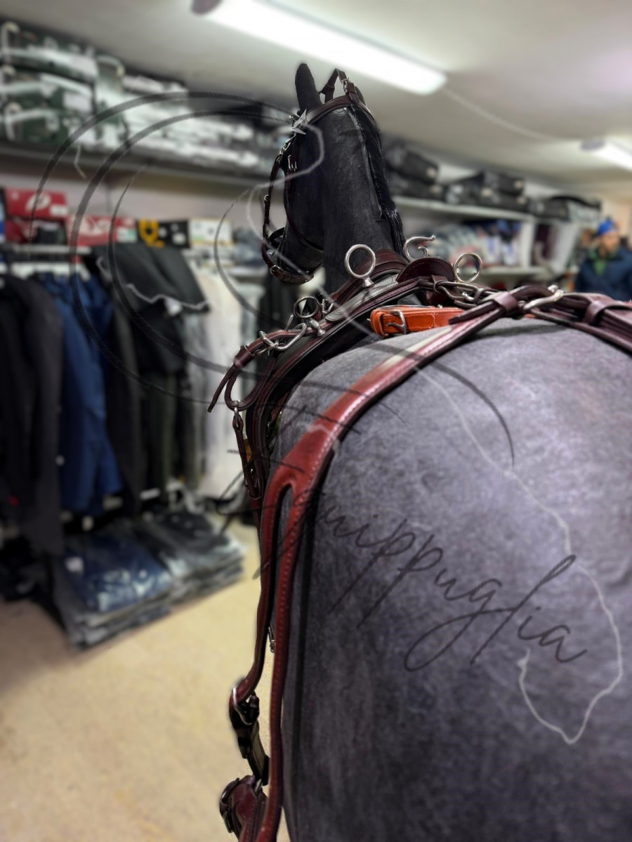 FINIMENTO DI OTTIMA QUALITA’ E FINITURE, IN CUOIO, ELEGANTI TESTIERE CON SOVRANUCA IMBOTTITO E CAPEZZINE SAGOMATE CON DOPPIA REGOLAZIONE. SELLINI CON SOTTOPANCIA IMBOTTITO. AMPI PETTORALE RINFORZATI .