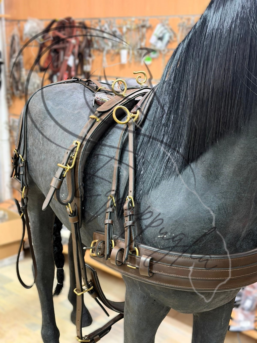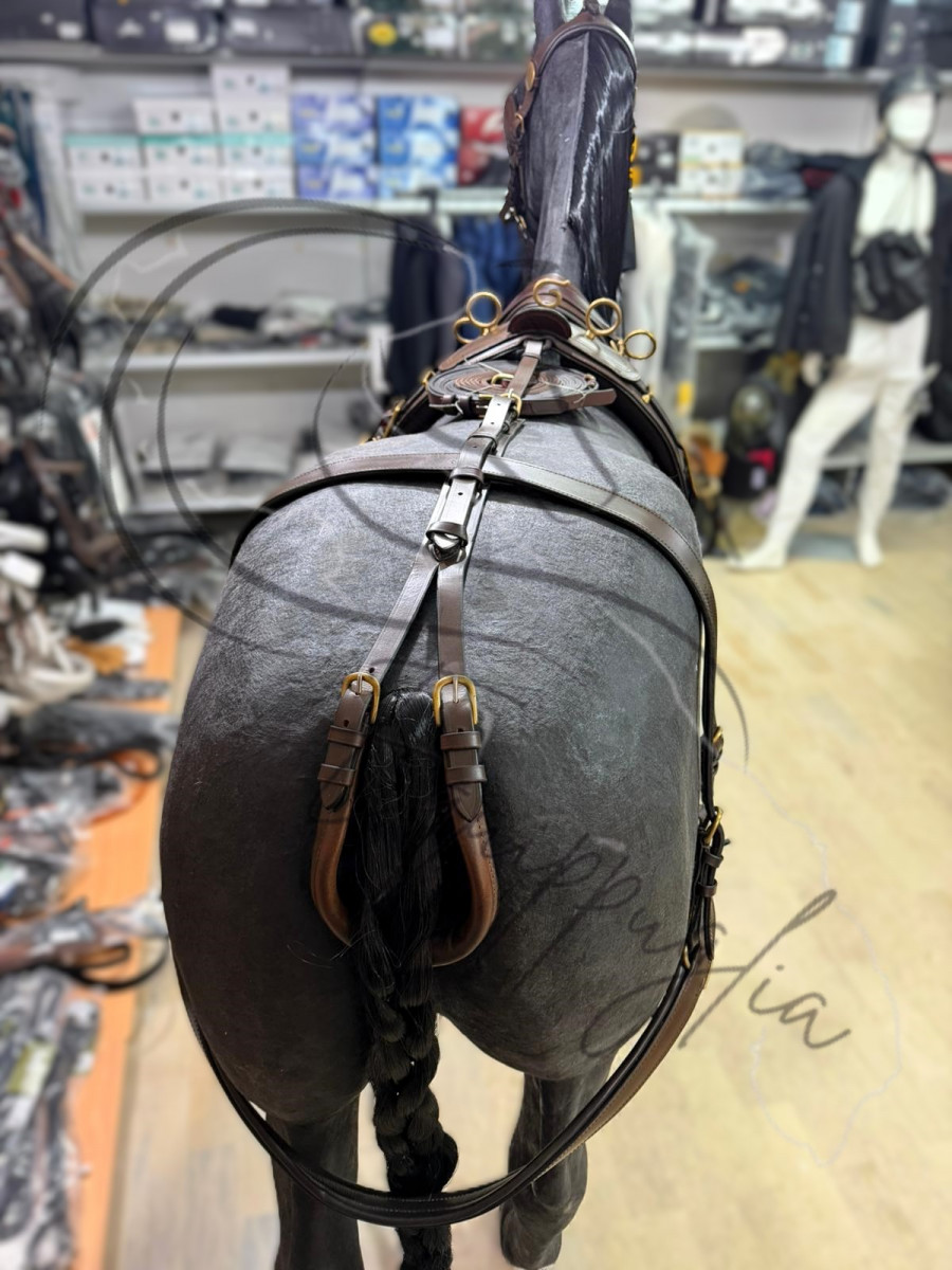 FINIMENTO DI OTTIMA QUALITA’ E FINITURE, IN CUOIO, ELEGANTI TESTIERE CON SOVRANUCA IMBOTTITO E CAPEZZINE SAGOMATE CON DOPPIA REGOLAZIONE. SELLINI CON SOTTOPANCIA IMBOTTITO. AMPI PETTORALE RINFORZATI