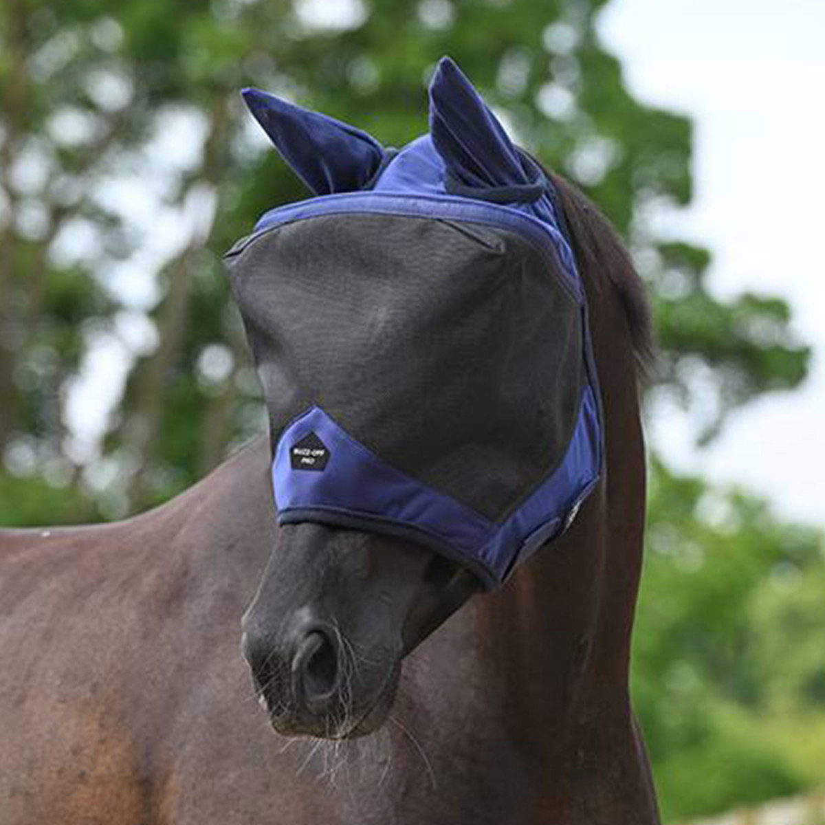Il materiale Stay-Dry sulla sommità della testa offre un'ottima traspirabilità, consentendo all'aria di circolare attraverso il tessuto ma impedendo l'ingresso delle mosche. La fascia frontale rinforzata allontana la maschera dalla fronte del cavallo, in modo che la rete facciale ad alta resistenza aderisca bene al muso del cavallo, garantendo un'ampia libertà di movimento per gli occhi.
