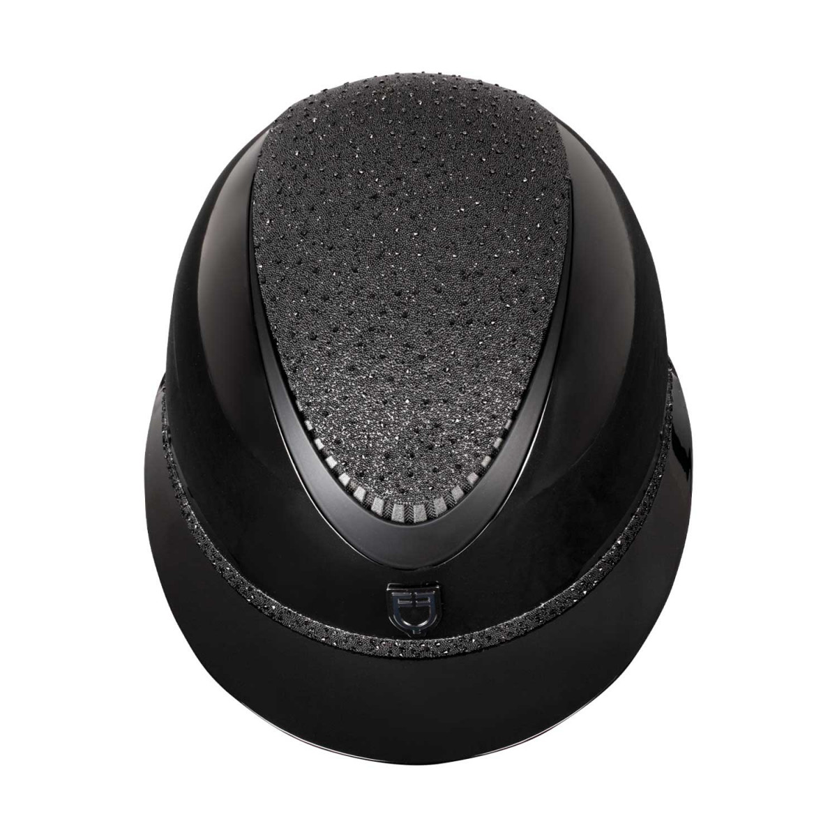 La presenza della targhetta con Logo tono su tono con il frame, rende il casco elegante e raffinato, in pieno stile Equestro.